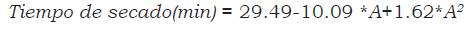 Para el rango utilizado en este estudio, la mayor VCP usada fue la más favorable al minimizar el tiempo de LIO. El modelo cuadrático del tiempo de secado presentó un efecto negativo con el factor VCP y un efecto positivo con su interacción cuadrática (Ecuación 1).