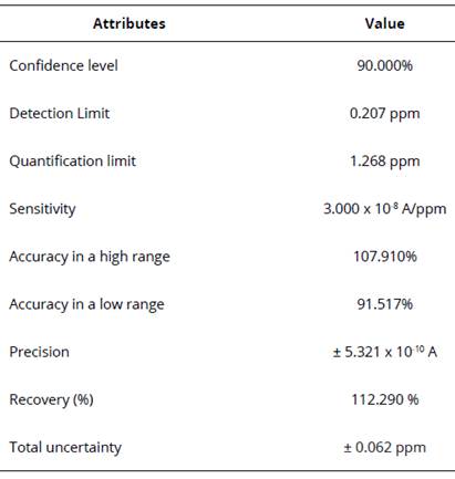 Attributes CP quantification method by linear sweep Polarography obtained are summarized was applied in Table 1. The validated method in onion extracts.