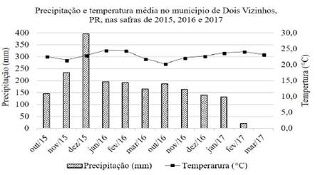 Figure 1: Precipitation and an average temperature in the municipality of Dois Vizinhos, PR, Brazil.