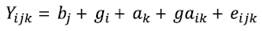where, bj = effect of block j; gi = effect of progeny i; ak = effect of storage k; gaik = effect of the interaction between progeny and storage ik; eijk = experimental error. The degrees of freedom of the effects of the factors as well as the interaction were unfolded via regression analysis, considering a coefficient of determination of the models above 60%. When this value was not obtained, the means were compared via Tukey test at 5% probability with the aid of the Assistat program, version 7.7 Beta (Silva, 2014).