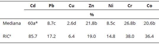 aRIC: Rango intercuartil. *Valores seguidos de letras diferentes en la misma fila difieren entre sí (P < 0.05).