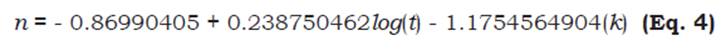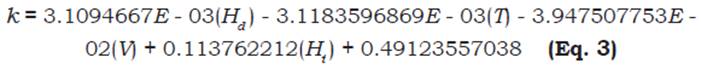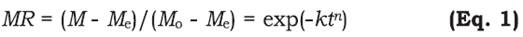 The drying rate coefficient (k), can be determined by multiple regression analyses based upon the Page model constraints (Vijayaraj et al., 2007) (Polanco, Kochergin, & Alvarez, 2013).