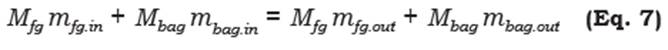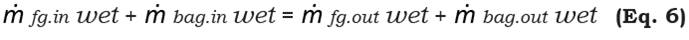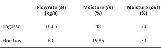 This mass balance can be broken into its respective mass flowrates and moisture content as shown below-