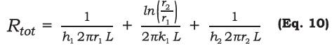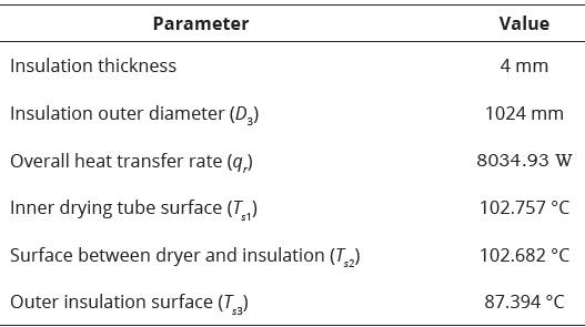 An analysis is first conducted to find the outer surface temperature of the drying tube without insulation. The overall heat transfer rate is calculated by Eq. 9-10.