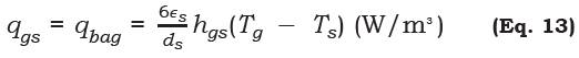 In works published by Mujumdar (Mujumdar, 2014), the heat transfer rate (per volume) between and gas and solid phase can be calculated via the following Eq. 13.