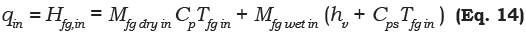 To calculate the energy at the inlet and outlet of the drying tube, an analysis of the flue gas enthalpy was conducted, assuming constant pressure throughout. Expressions for the enthalpy at the inlet and outlet are presented below (Eq. 14-15). Table 18 summarizes the parameters used to solve the enthalpy analysis.