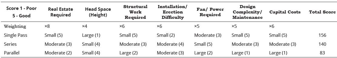 After consultation with the company about the importance of design aspects and design requirements, a weighted decision matrix (Ouye, Facility Technics Facility Management Consulting) was devised (Table 25) and determined that the single-pass circular drying tube is the most appropriate and accepted by company engineers.