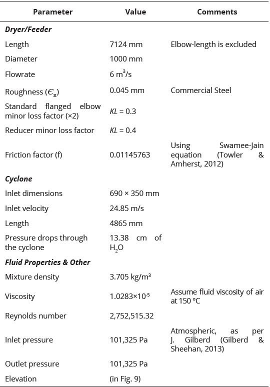 while the head loss due to the pressure drop in the cyclone can be found via hdryer = ΔP/pg. With the given information, Eq. 16 can be solved (Table 23).