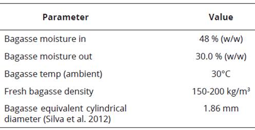 The sugarcane processing industry produces bagasse as a by-product that persists after the crushing of cane (Raj & Stalin, 2016)(Shrivastav & Hussain, 2013)(Ravichandran, Kavinkumar, Kumar, Prasanth, & Ramkumar, 2017). Around 12% of sugarcane mass becomes bagasse that contains moisture and a small amount of soluble solids (Gilberd & Sheehan, 2013). Bagasse can be a useful waste for co-generation plants such as for power production (To, Seebaluck, & Leach, 2018) (Silva, Schlindwein, Vasconcelos, & Corréa, 2017). With increasing pressure to find alternative energy generation to that of traditional fossil fuels, an increase in efficiency of the burning of bagasse for energy generation will be beneficial not only for the sugarcane industry but also for society in general (To et al., 2018)(Silva et al., 2017). Moisture is a key factor that affects the efficiency of the burning of bagasse (Abdalla, Hassan, & Mansour, 2018) wherefore, 26 kg/s of bagasse flows with constant rate (proposed design(Shanmukharadhya & Sudhakar, 2007). A proper industrial scale improved design of the bagasse drying system is essential to ensure the resolution of such a problem.