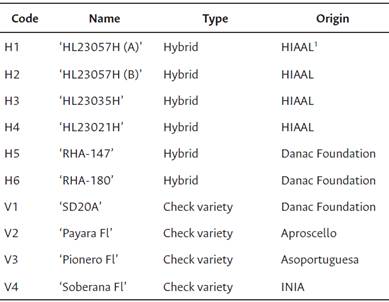 Table 1: Genetic materiaLs of the HIAAL rice hybrid nursery for Venezuela