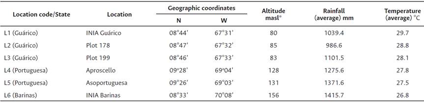 Source: National Institute for Agricultural Research (INIA) - Agro-Meteorology. http://agrometeorologia.inia.gob.ve/index.php *masl = meters above sea level.