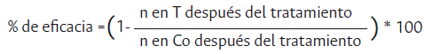 Ecuación 1. Fórmula de Abbott para evaluación de eficacia (%).