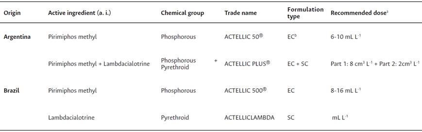 Table 2: List of phytosanitary products used for the control of insect pests in post-harvest in Argentina and Brazil