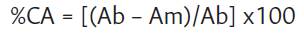 Dónde: Ab= absorbancia del catión radical ABTS control, Am= absorbancia del catión radical ABTS con muestra.