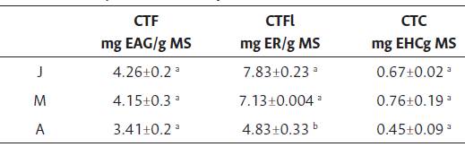 Tabla 2: Determinación colorimétrica de CTF, CTFl, CTC presentes en los extractos de hojas de Moringa oleífera
