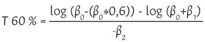 La ecuación para hallar el T60 % se obtuvo como en Ramírez et al. (2009) de la siguiente manera:
