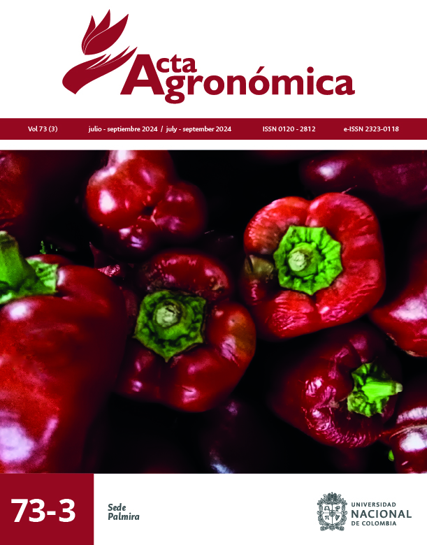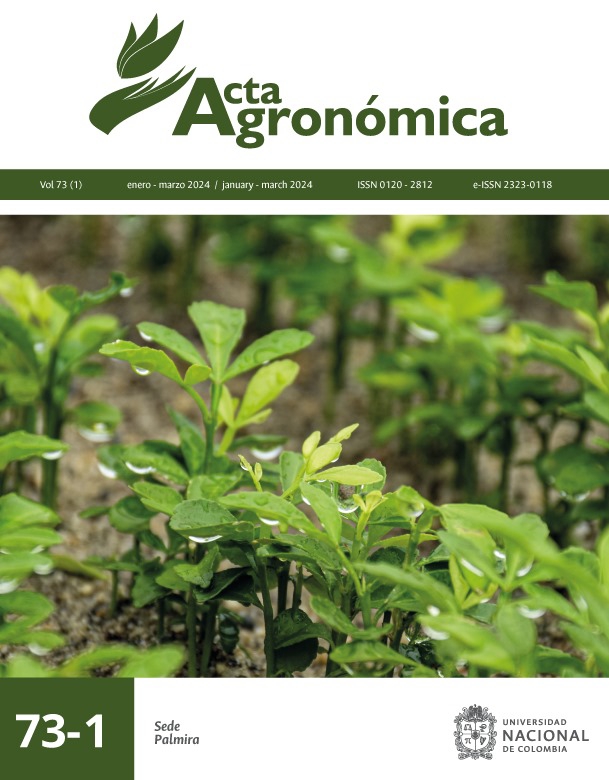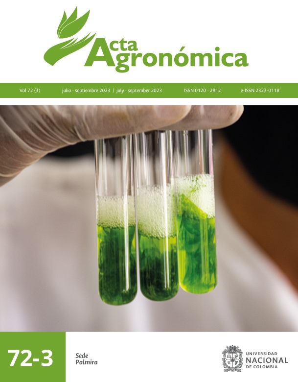 Acta Agronómica. Joel Tupac Otero Ospina - Editor Jefe - Universidad Nacional de Colombia - Sede Palmira, Colombia - Cra.  32 No.12-00 - Teléfono: 57-2-2868888, ext. 35190 Fax: 57-2-2868841 - Correo-e: actagronomica_pal@unal.edu.co