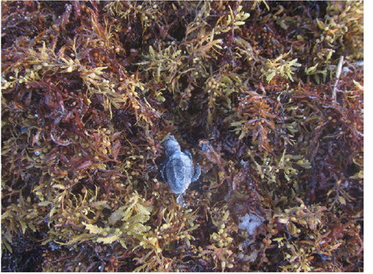 Figure 3: A baby turtle struggling in the Sargassum mat.