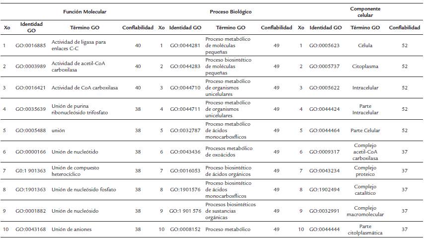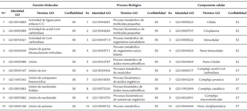 Tabla S4: Ontología genética de la αACCasa de Chlorella sp.