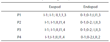 Table 1: Legs 1-4 setal armature of Halicyclops gutierrezi sp.n. (Roman numerals indicating spines, Arabic numerals representing setae).