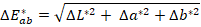 Se define delta E (ΔE) como la distancia dentro del espacio CIELAB entre dos estímulos diferentes que se encuentren en entornos idénticos y con las mismas condiciones de iluminación. Para calcular la diferencia de color existen dos fórmulas: CIELAB (ΔE*ab) y CIEDE2000 ( E00). La primera utiliza la siguiente fórmula que ha sido usada en múltiples campos y aplicaciones (13, 33):