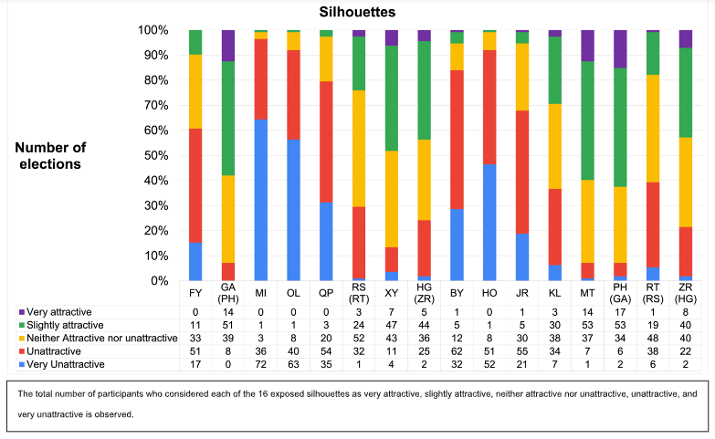 Figure 4.: Distribution of the silhouette considered the most and least aesthetic for the total population.