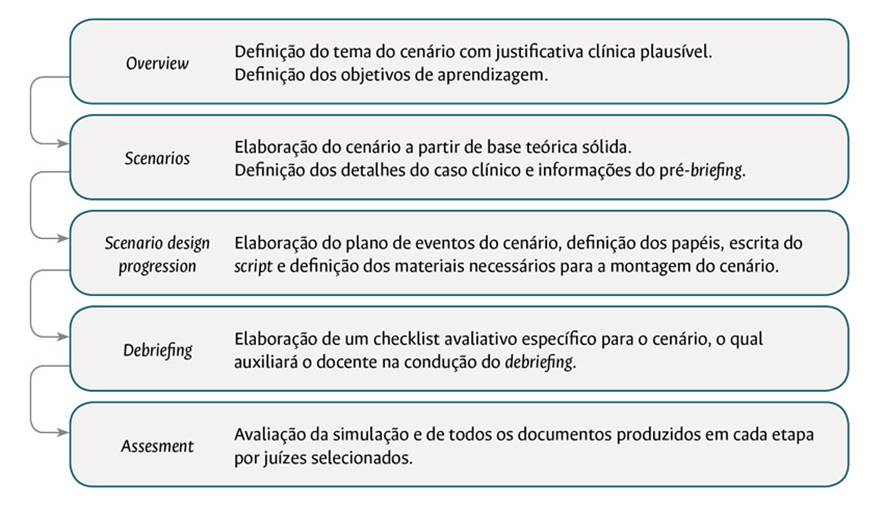 Diante disso, observa-se uma crescente nas publicações sobre cenários validados no meio científico, pois estes dão maior segurança ao docente de que os objetivos propostos para a simulação sejam atingidos. A validação de cenários ocorre mediante análise por um corpo de juízes, experts no assunto tratado no cenário, sobre sua reprodutibilidade e capacidade de cumprir os objetivos de aprendizagem propostos 12, 13.