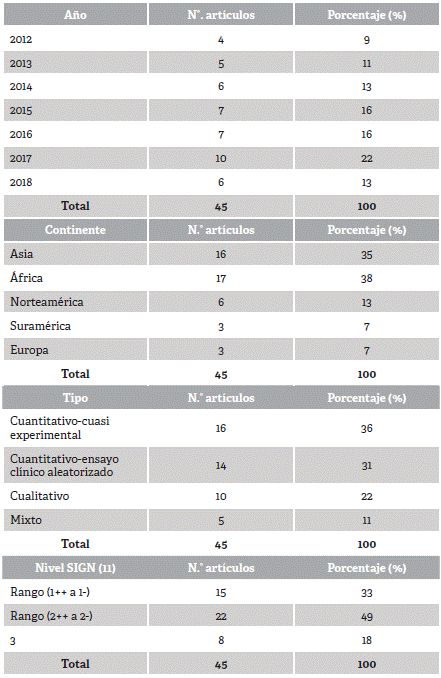 Como resultados de la revisión integral de literatura científica realizada en cinco bases de datos, en la Tabla 1 se presentan las características generales de los estudios identificados.
