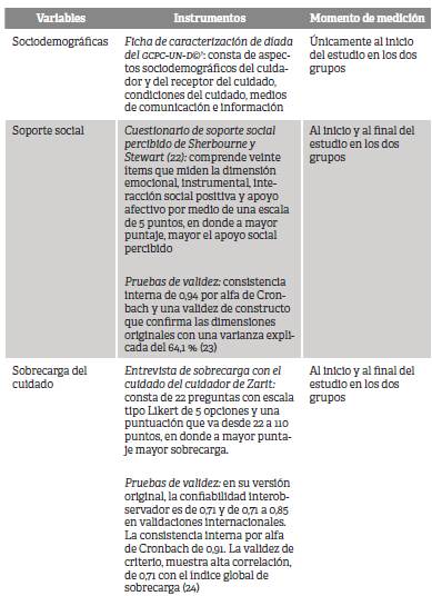 Cuadro 1: Variables medidas e instrumentos aplicados