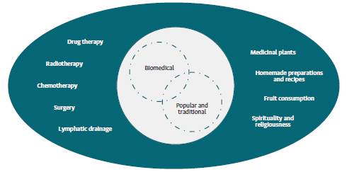 In the narratives, the participants used biomedical care and popular or traditional care modalities as supplements for biomedical cancer treatment, as described in Figure 1. The following categories were elaborated from the data analysis: Biomedical care modalities and popular and traditional care modalities.