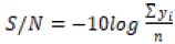 La relación S/N como más pequeño es mejor característica puede ser calculado como la transformación logarítmica de la función de pérdida que se describe con la ecuación: