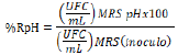 Las cepas que resistieron la presencia de sales biliares y acidez se cultivaron en 30 mL de caldo MRS, Nutritivo modificado, SDA y se incubaran a 37 °C durante 24 y 48 horas; el crecimiento se comprobó mediante la determinación del número de células viables (UFC) y se determinó su porcentaje (Laurencio et al., 2002).