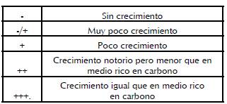 El crecimiento de los aislamientos con los hidrocarburos se evaluó cualitativamente, de acuerdo con los siguientes criterios: