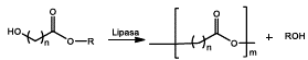 En 1986 se empleó ácido 12-hidroxioctadecanoico, ácido 12-hidroxi-cis-9-octadecenoico, ácido 16-hidroxihexa-decanoico y ácido 12-hidroxidodecanoico y mediante una reacción a 35°C en agua, hidrocarburos alifáticos o benceno con lipasa de Candida cylindracea (lipasa CC) como catalizador, se obtuvieron oligómeros con peso molecular promedio en número alrededor de(