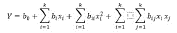 Donde Y es la variable de respuesta (variable dependiente); Xi es la variable independiente que influye en la variable respuesta Y; b0 es el coeficiente lineal; bii es el coeficiente cuadrático y bij es el coeficiente de interacción (Jiménez et al., 2015).