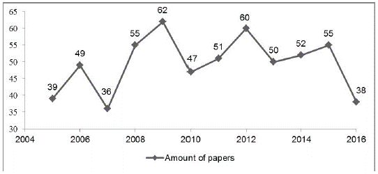 Figure 2: Amount of papers published on culture media for Lactobacillus in the period 2005-201 6.