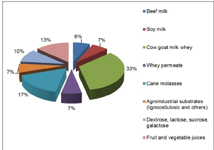 Figure 3: Type of substrate and percentage of use in culture media for Lacto bacillus in the last fifteen years.