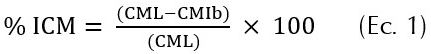 Donde: % ICM corresponde al porcentaje de inhibición del crecimiento micelial, CML es el crecimiento micelial libre en milímetros, y CMIb es el crecimiento micelial influenciado por la bacteria en milímetros.