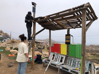 Este punto, sin embargo, carecía de la infraestructura que los vecinos identificaban como necesaria: no había un lugar donde sentarse ni un techo que cobijara de la llovizna costera o del frío del invierno. Los vecinos decidieron autoconstruir uno a partir de materiales reciclados disponibles en sus casas.