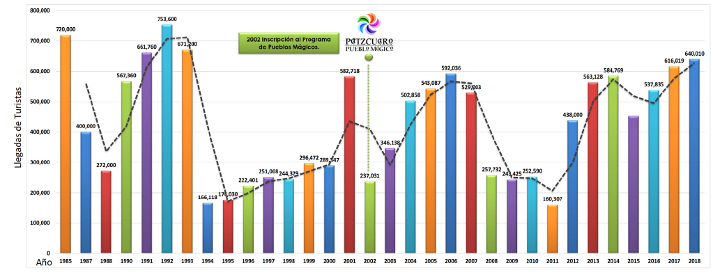 A la fecha no se han concretado estrategias integrales que atiendan las debilidades en su gestión como destino turístico patrimonial. Sin embargo, a partir de 2016 tuvo un avance en la resiliencia turística (Ayuntamiento de Pátzcuaro, 2016), y reportó un crecimiento turístico sostenido que, del 15 de diciembre de 2019 al 6 de enero de 2020, se tradujo en la llegada de 850 mil turistas, de acuerdo con los datos de la Secretaria de Turismo de Michoacán y del Municipio de Pátzcuaro. También hubo avances en la resiliencia social, pues la inseguridad se redujo notablemente en los últimos años.