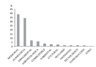 Medicinal: Plantas que poseen propiedades preventivas o curativas para enfermedades humanas. Incluye las subcategorías: antipirético, antibiótico, analgésico, cicatrizante, antiinflamatorio, para curar afecciones respiratorias, antidiarreico, contra infecciones gastro-intestinales, diurético y otros. Combustible: Plantas que por su estructura son usadas para proveer fuego. Incluye las subcategorías: carbón, leña y otros.