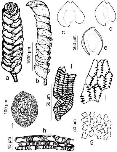 Comentarios. Esta especie presenta brácteas masculinas dispuestas en espigas de hasta 10 pares, con dos anteridios por bráctea.
