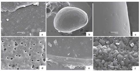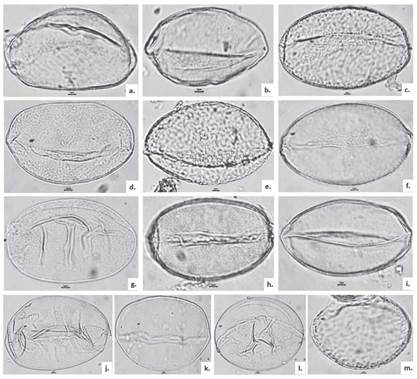 Two general types of ornamentation were observed: rugulate and psilate with perforations. In the rugulate type, some variations were found: slightly rugulate, rugulate and rugulate with perforations. In this study, based on size and type of ornamentation, the pollen grains correspond to three out of the seven pollen types according to Praglowski (1974) (Table 2).