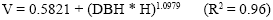 Where V is the volume in m3; DBH is diameter at breast height (1.3 m) in m; and H is the total height in m. According to this function, a palm tree 2 m in diameter and 33 m high has a stem volume of 57.9 m3.