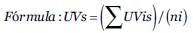 Donde UV = Valor de Uso, UVis = la suma de las menciones de la especie por informante y ni = número total de informantes. Es decir, la suma de los usos de dados por cada informante por especie dividida entre el número total de informantes.