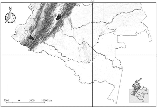 Figura 3: Mapa de distribución de Dalea wilsonii en Colombia