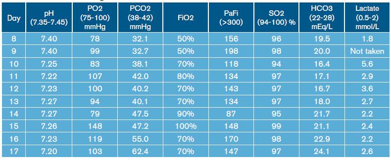 Table 2: Arterial blood gases.