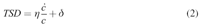 Donde ċ = dc/dt y si llamamos η a la elasticidad de la utilidad marginal del consumo con respecto al consumo , puede mostrarse que la TSD es: