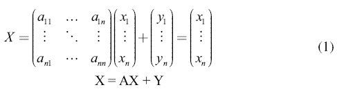 Aquí, X es un vector n x 1, que recoge en cada elemento xi la producción bruta de cada uno de los n sectores económicos. Y es un vector n x 1, con los componentes de la demanda final. Finalmente, A es una matriz n x n, denominada de requerimientos técnicos y conformada por los coeficientes αij, que indican cuáles son las necesidades del insumo i por unidad de producción bruta del sector j. Cada coeficiente es fijo para el período de construcción de la MIP, suponiendo retornos constantes a escala.