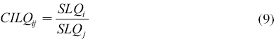 Con base en ello, se definen el coeficiente de localización simple (SLQi) y el coeficiente de localización interindustrial (CILQij).